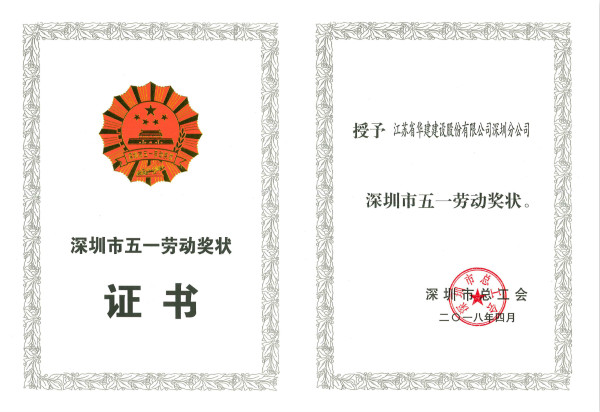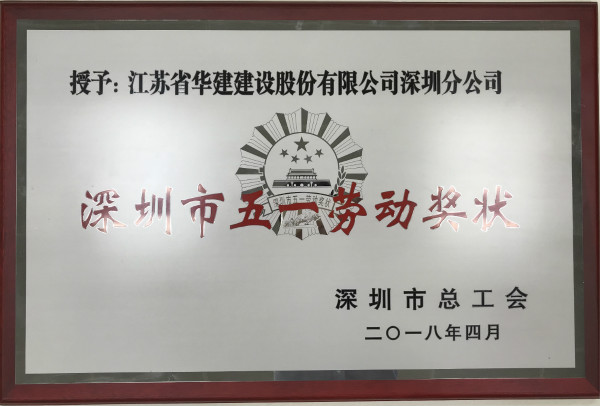 江蘇華建深圳公司被授予深圳市五一勞動獎狀