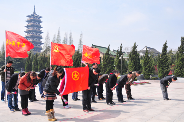 總部開(kāi)展祭掃革命烈士墓活動(dòng) 時(shí)間:2013-04-033910 4月3日,總部機(jī)關(guān)黨支部和團(tuán)委聯(lián)合開(kāi)展祭掃革命烈士墓活動(dòng),總部機(jī)關(guān)、華建置業(yè)20余名同志參加。紀(jì)委副書(shū)記、黨辦主任陳緒寶主持活動(dòng),副總經(jīng)理兼總工程師程杰帶領(lǐng)大家向烈士紀(jì)念碑三鞠躬,并敬獻(xiàn)了鮮花,隨后大家共同參觀了烈士英雄事跡展。